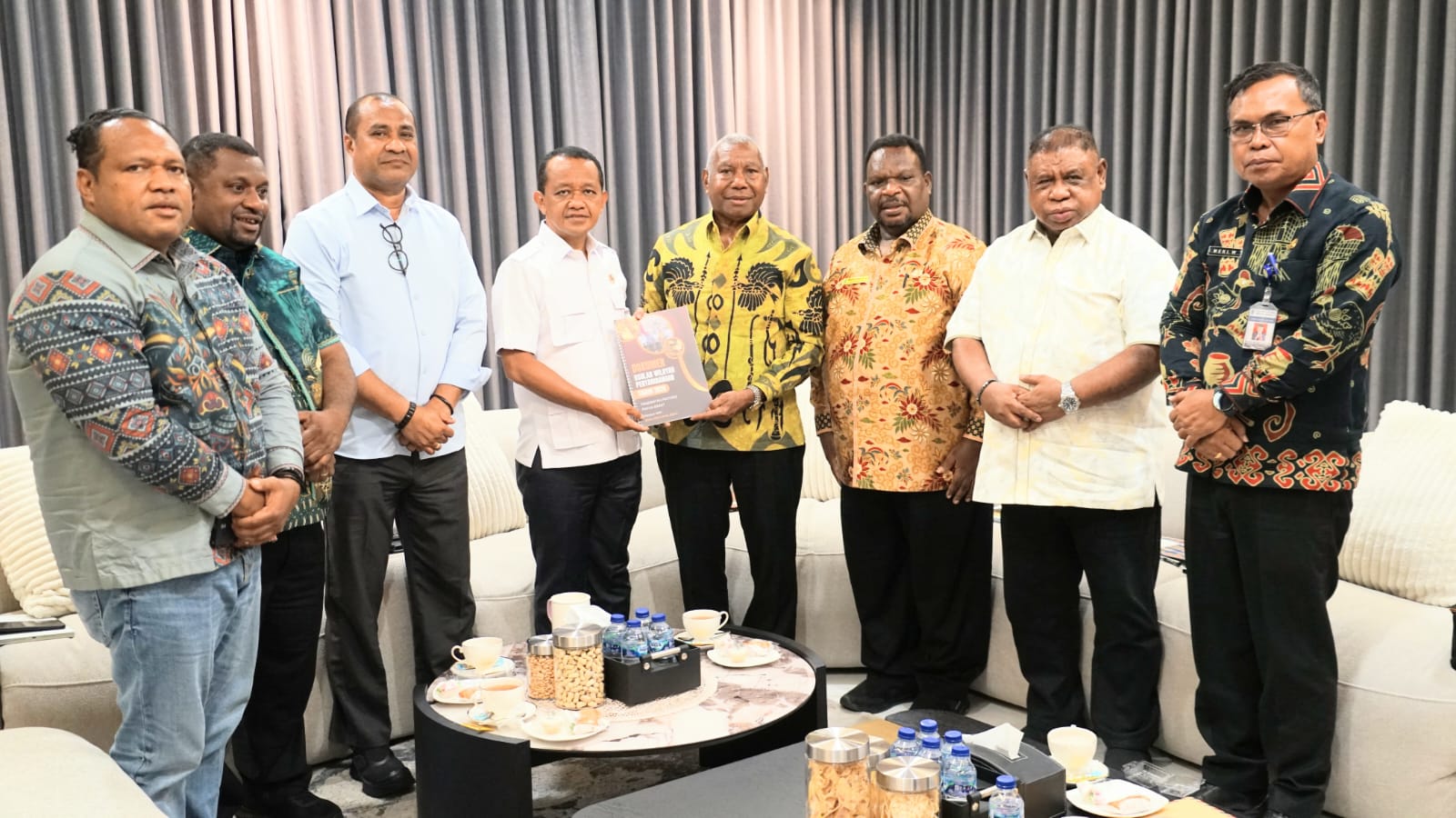 JAKARTA - Gubernur Papua Barat, Drs Dominggus Mandacan, M.Si didampingi Sekda, Forkopimda dan sejumlah pimpinan OPD melakukan pertemuan dengan Menteri ESDM Republik Indonesia, Bahlil Lahadalia, Jumat (10/4/2026) malam. Sesuai keterangan melalui Asisten II Setda Papua Barat, Melkias Werinussa S.E.,MH, menyatakan setidaknya terdapat empat poin penting yang disampaikan Gubernur. Pertama dijabarkan berkaitan pencairan Participating Interest (PI) 10 persen. Selanjutnya jatah gas 20 mmscfd (Million Standard Cubic Feet per Day) Papua Barat, lokasi kontrak kerja kerja baru, dan penetapan Wilayah Pertambangan Rakyat (WPR). Menteri ESDM...