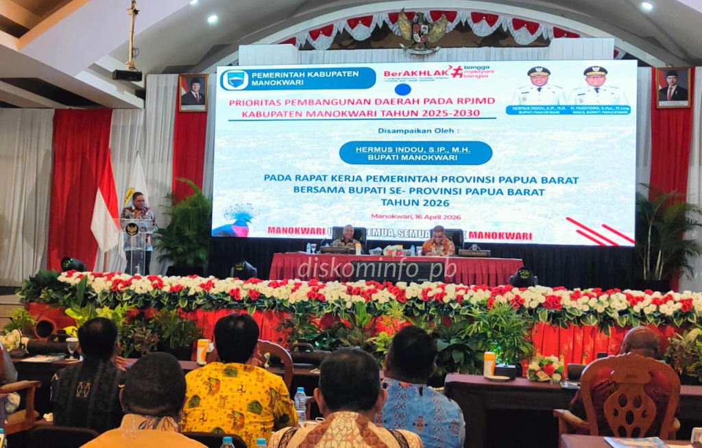 Baca SelengkapnyaMANOKWARI - Transformasi Manokwari menuju kota modern, inklusif, dan berdaya saing menjadi fokus utama pemerintah daerah dalam paparan pembangunan yang disampaikan pada Raker Provinsi. Bupati Hermus Indou,S.IP.,M.H menegaskan komitmen pemerintah daerah dalam mendorong transformasi Manokwari sebagai pusat peradaban, pemerintahan, dan pertumbuhan ekonomi di Papua Barat, Kamis (16/04/2026). Dijelaskan Bupati Hermus dalam perencanaan pembangunan jangka menengah daerah tahun 2025–2030, Manokwari diarahkan menjadi pusat religi, pendidikan, kebudayaan, dan olahraga di Tanah Papua. Pengembangan kawasan Pulau Mansinam menjadi salah satu fokus utama sebagai simbol sejarah dan wisata religi, sekaligus memperku...