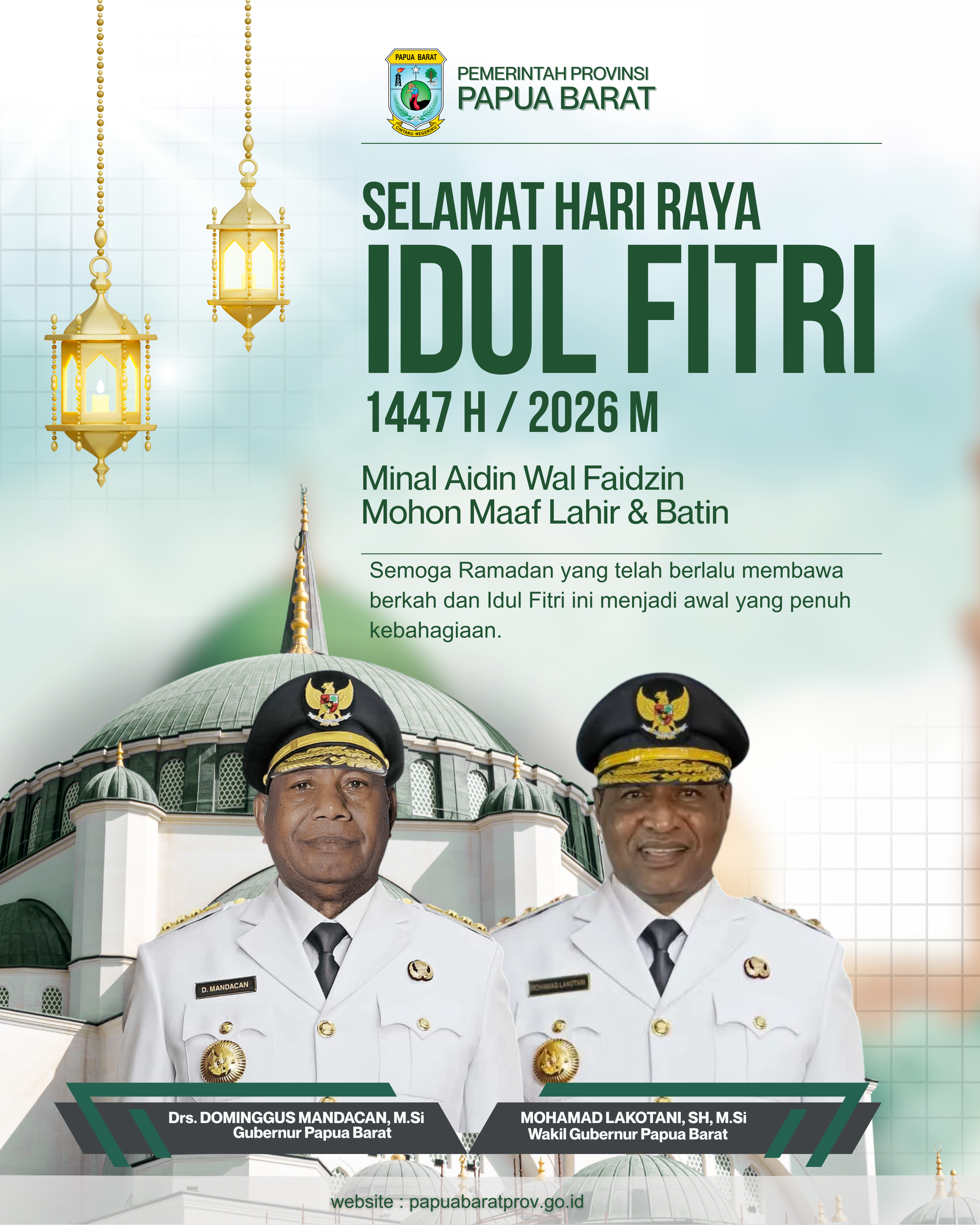 Baca SelengkapnyaMANOKWARI - Perayaan Idul Fitri 1 Syawal 1447 Hijriah/2026 M di Provinsi Papua Barat berlangsung penuh kehangatan dan kebersamaan. Wakil Gubernur Papua Barat menggelar open house di kediamannya di Susweni sebagai bentuk silaturahmi bersama masyarakat dan jajaran pemerintahan, Sabtu (21/03/2026). Pantauan Media Diskominfo, kegiatan yang dimulai sejak pukul 10.00 hingga 18.00 WIT itu menghadirkan suasana yang sarat makna, di mana nuansa keakraban dan kesejukan begitu terasa. Momentum hari kemenangan ini menjadi ruang bertemunya berbagai lapisan masyarakat dalam balutan kebersamaan dan saling memaafkan. Gubernur Papua Barat,Drs. Dominggus Mandacan,M.Si turut hadir dan men...