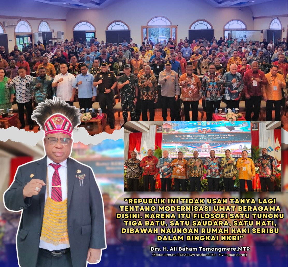 MANOKWARI – Ketua Umum Pesta Paduan Suara Gerejawi Nasional (Pesparawi) ke-XIV Tahun 2026 di Papua Barat, Drs. H. Ali Baham Temongmere,MTP yang juga menjabat sebagai Sekertaris Daerah menyampaikan perkembangan tahapan persiapan menjelang pelaksanaan event nasional yang dijadwalkan berlangsung pada Juni mendatang. Penyampaian tersebut dilakukan dalam Rapat Kerja Bupati, Kamis, (16/04/2026). Dalam pemaparannya, Ketum Ali Baham menjelaskan berbagai persiapan teknis terus dimatangkan, termasuk uji coba Ruang Terbuka Publik (RTP) Borarsi yang telah dilakukan beberapa kali sebagai bagian dari kesiapan venue kegiatan. Selain itu, bersama Gubernur Papua Barat, piha...