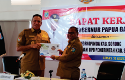 Penjabat Bupati Kabupaten Sorong, Yan Piet Moso,.S.Sos,MM menyerahkan rencana strategis percepatan pembangunan kepada Penjabat Gubernur Papua Barat, Komjen Pol. (Purn) Drs. Paulus Waterpauw,M.Si. Dirinya juga melaporkan progres kinerja yang baru berjalan selama dua hari, Selasa ( /8/2022).