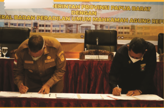 Penandatanganan Naskah Perjanjian Hibah Daerah Antara Pemerintah Provinsi Papua Barat dengan Direktur Jendral Badan Peradilan Umum Mahkamah Agung RI