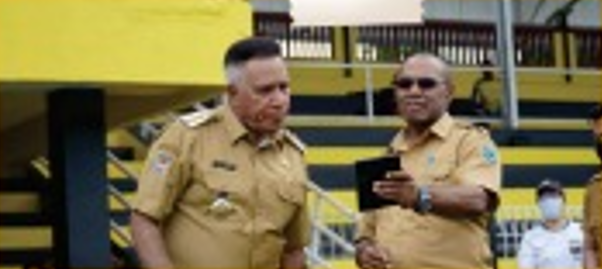 Penjabat (Pj) Gubernur Papua Barat, Komjen Pol (Purn) Drs Paulus Waterpauw M.Si didampingi Pelaksana tugas (Plt) Kadis PUPR Provinsi Papua Barat, Yohanis Momot ST, MT meninjau pembenahan Stadion Sanggeng Manokwari yang akan dijadikan tempat upacara HUT ke-77 RI pada 17 Agustus 2022.