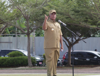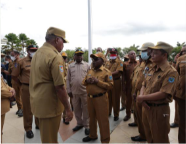 Pejabat Gubernur Papua Barat, Komjen Pol. (Purn) Drs. Paulus Waterpauw, M.Si saat memberi arahan dalam apel perdana menginstruksi kepada semua pihak mendukung capaian vaksinasi, dan membantah informasi tidak benar terhadap dampak vaksin.