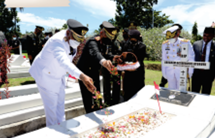 Rangkaian Ziarah Nasional di Taman Makam Pahlawan diawali mengheningkan cipta dipimpin Inspektur upacara. Selanjutnya Kapolda Papua Barat meletakan karangan bunga dan memberi penghormatan.